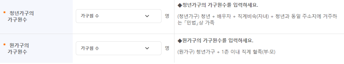 - 청년가구 : 청년 본인 + 배우자 + 자녀 / 원가구 (미포함)