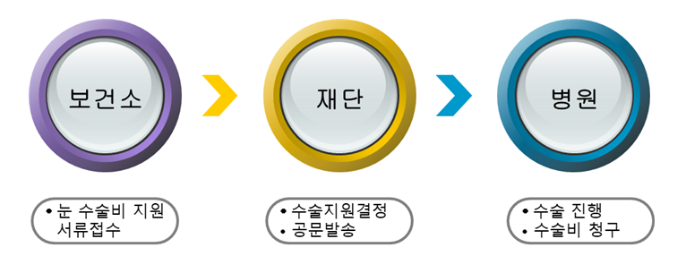 눈 질환과 관련한 수술 전 검사비 및 수술비가 지원됩니다.