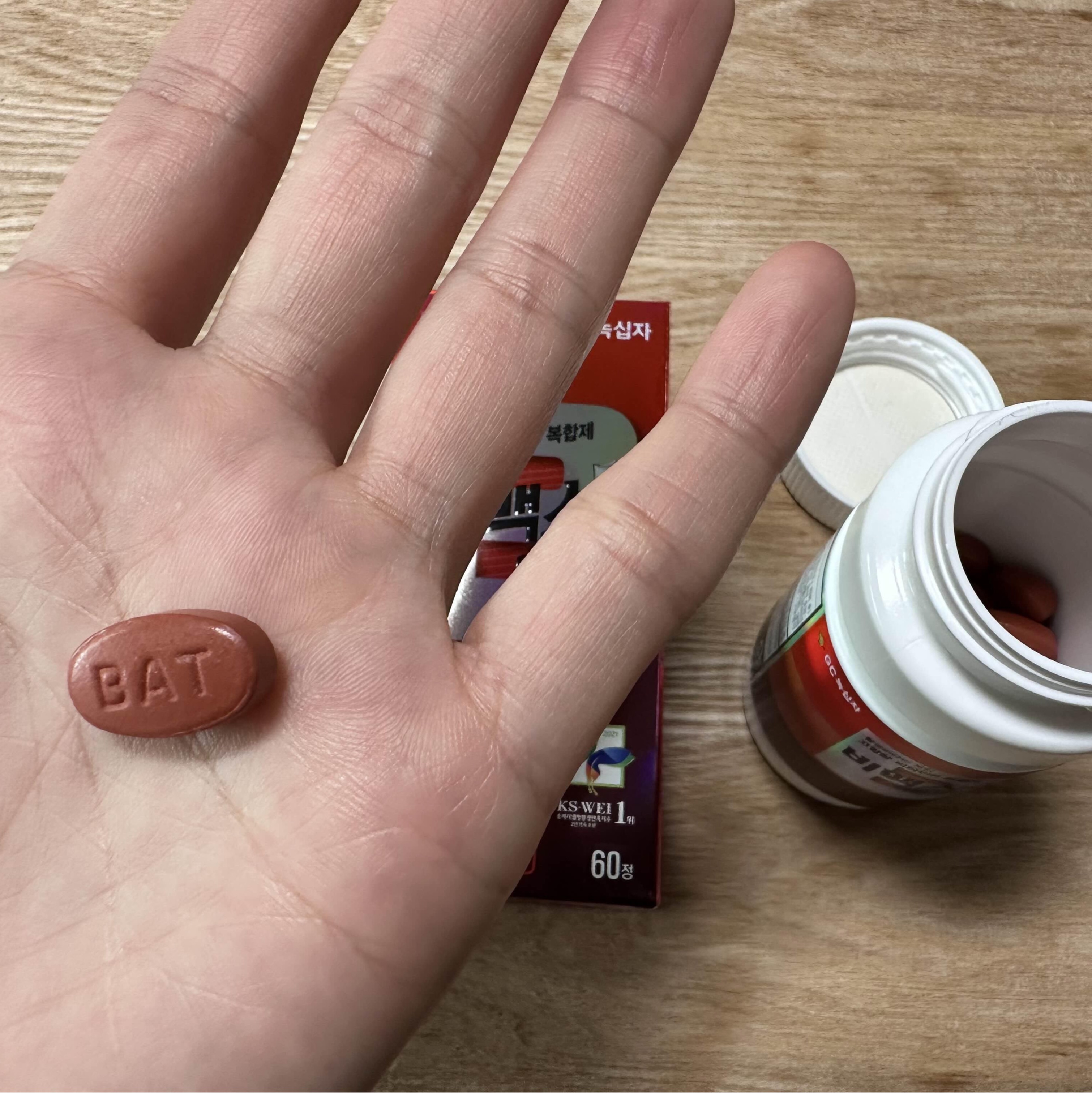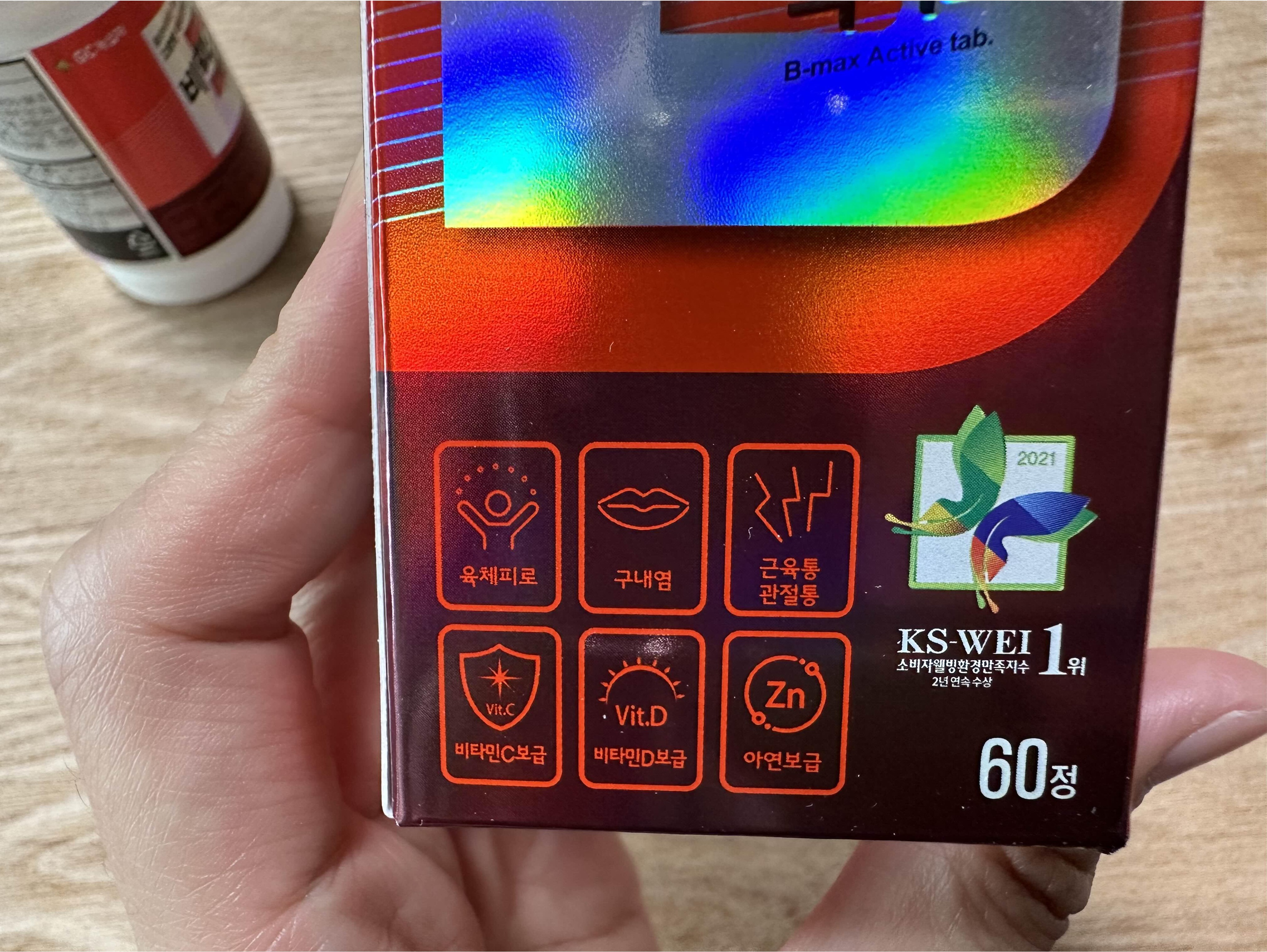 비맥스 정은 크기가 생각보다 작아서 목넘김이 편했어요. 외국 비타민은 크기가 매우 큰 비타민이 많던데 비맥스는 1/2크기 정도 되는 거 같아요. 매일 먹는 영양제의 크기가 크면 목넘김이 불편해서 부담스럽더라고요